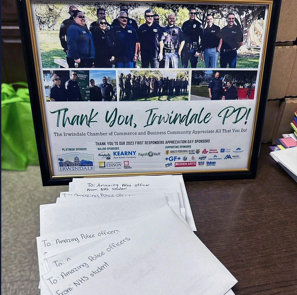 OFL students show appreciation on Irwindale's '2023 First Responders Appreciation Day' by creating 'Thank You' cards. 80+ cards were placed in goody bags, delivered to local stations by Irwindale Chamber members, accompanied by a hearty lunch on September 14, 2023.